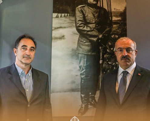 30 Ekim 2024 tarihinde Çanakkale Onsekiz Mart Üniversitesi ev sahipliğinde “Ahde Vefa Sohbetleri 2: Çanakkale Cephesi Şehit ve Gazi Torunları” etkinliğinde kahramanlarımızın hatıralarını yaşatacağız. Bu özel toplantı öncesi 28 Ekim 2024 tarihinde 57’nci Alay Komutanı Yarbay Hüseyin Avni Bey’in Torunu Sn. Hüseyin Avni TANMAN, 33’üncü Alay Komutanı Binbaşı Ali Faik Bey’in Torunu Sn. Erdal KABATEPE ve Enstitü Başkanımız Prof. Dr. Murat KARATAŞ, Çanakkale Valisi Sn. Doç. Dr. Ömer TORAMAN’ı ziyaret ettiler.
