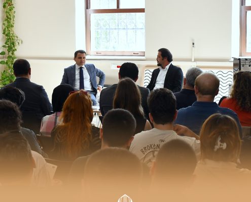 Lisansüstü Eğitim Enstitüsü Müdürü Prof. Dr. Ahmet Evren ERGİNAL’ın Moderatörlüğünde gerçekleşen söyleşide konuşmacı olarak Çanakkale Savaşları Gelibolu Tarihi Alan Başkanı Sayın İsmail KAŞDEMİR ile Çanakkale Savaşları Enstitüsü Başkanı ve Askeri Tarih Anabilim Dalı Başkanı Prof. Dr. Murat KARATAŞ yer aldı.